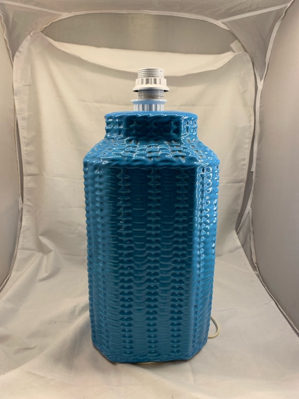 Base lampada ceramica turchese effetto rattan vintage anni ‘70
