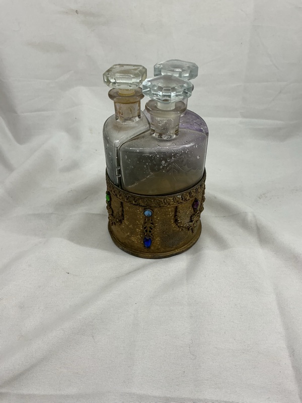 Boccette per sali da bagno antico in metallo con pietre