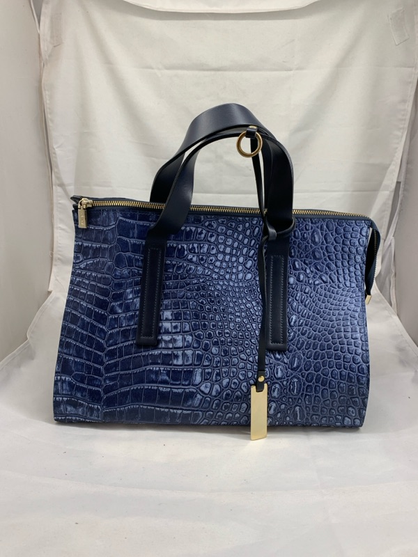 Borsa donna rigida marcata Ripani in pelle effetto rettile blu