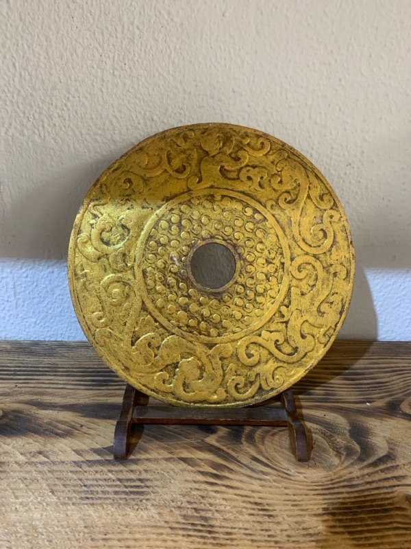 Disco di Pi di origine cinese in pietra e foglia oro