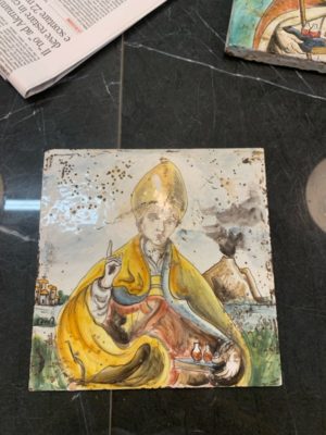 Maiolica dipinta San Gennaro con dito alzato d’epoca