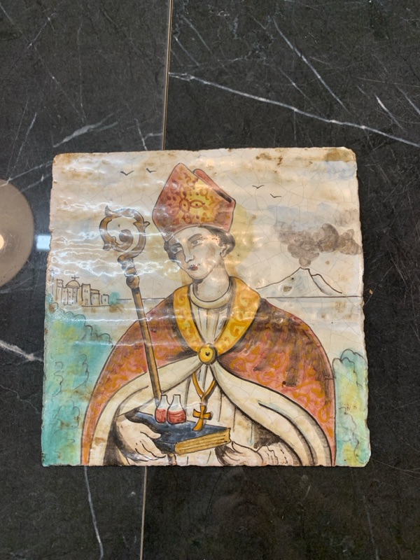 Maiolica dipinta ritratto San Gennaro con bastone