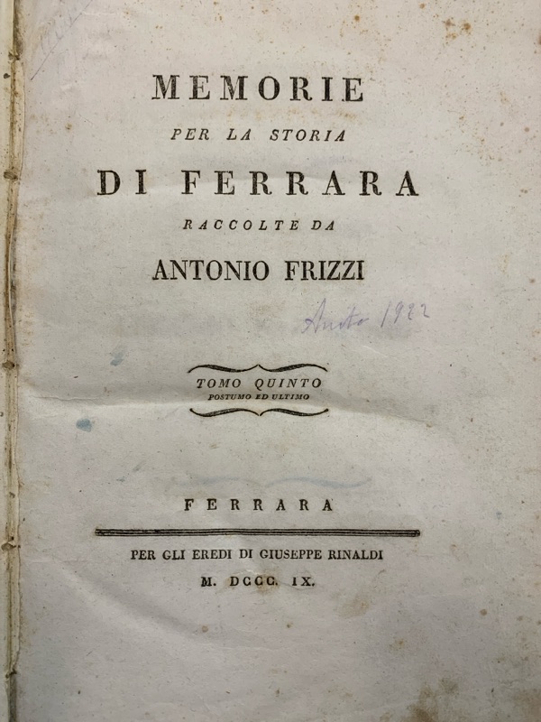 Memorie per la storia di Ferrara Antonio Frizzi