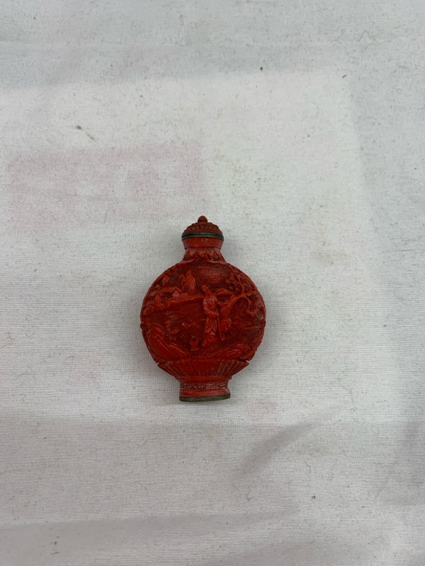 Piccola snuffle bottle in lecca incisa cinese rossa
