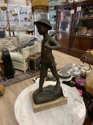 Statua giovane scugnizzo pescatore base in marmo firma de Marino
