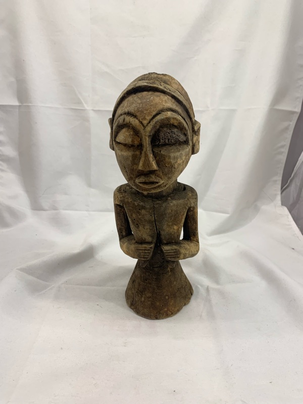 Statua di donna in legno di cocco rudimentale etnica produzione tiki